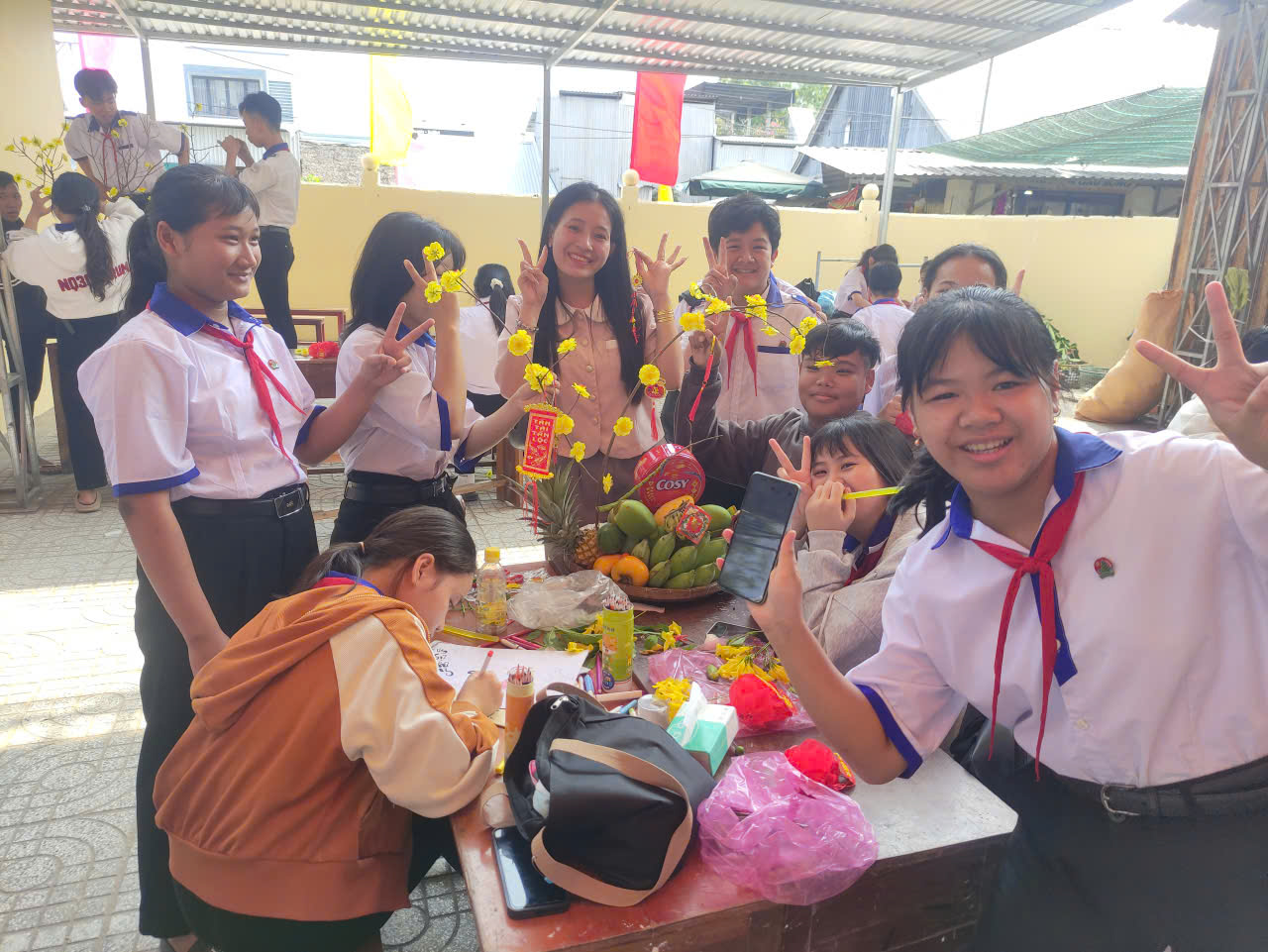 Một số hình ảnh các em học sinh trải nghiệm hoạt động trang trí mâm ngũ quả ngày tết