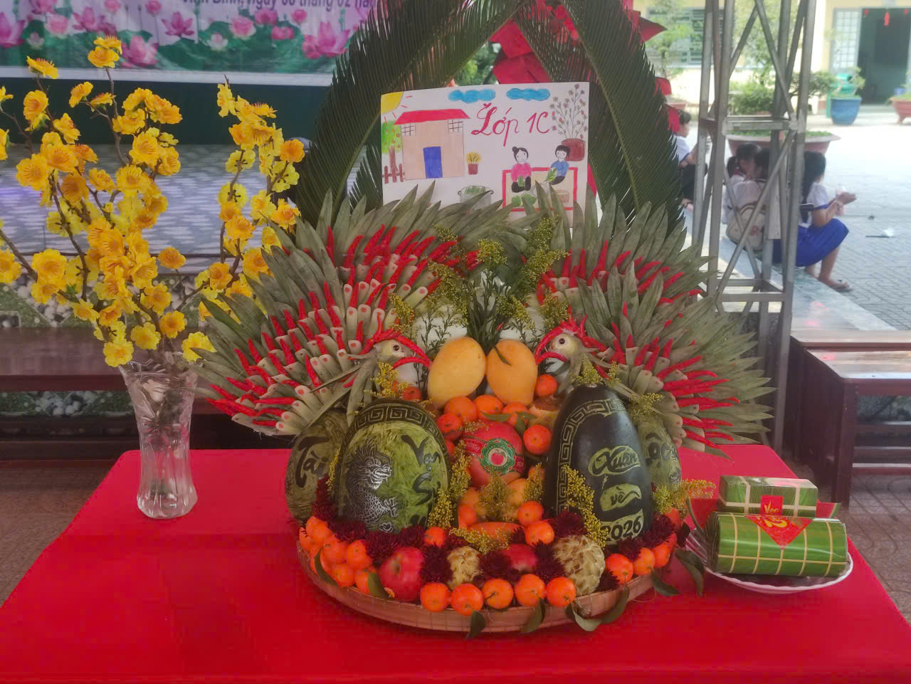 Mỗi mâm ngũ quả là một tác phẩm nghệ thuật, không chỉ đẹp về hình thức mà còn gửi gắm những ước vọng về một năm mới Bính Ngọ 2026 bình an, sung túc và đạt nhiều thành tích cao trong học tập. Phần thuyết trình ý nghĩa mâm ngũ quả của các lớp cũng cho thấy các em học sinh Trường TH&THCS Vĩnh Bình Nam 1 rất hiểu và trân trọng những giá trị văn hóa cổ truyền của dân tộc.