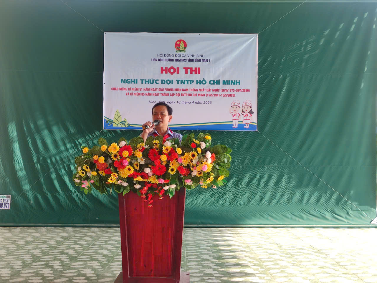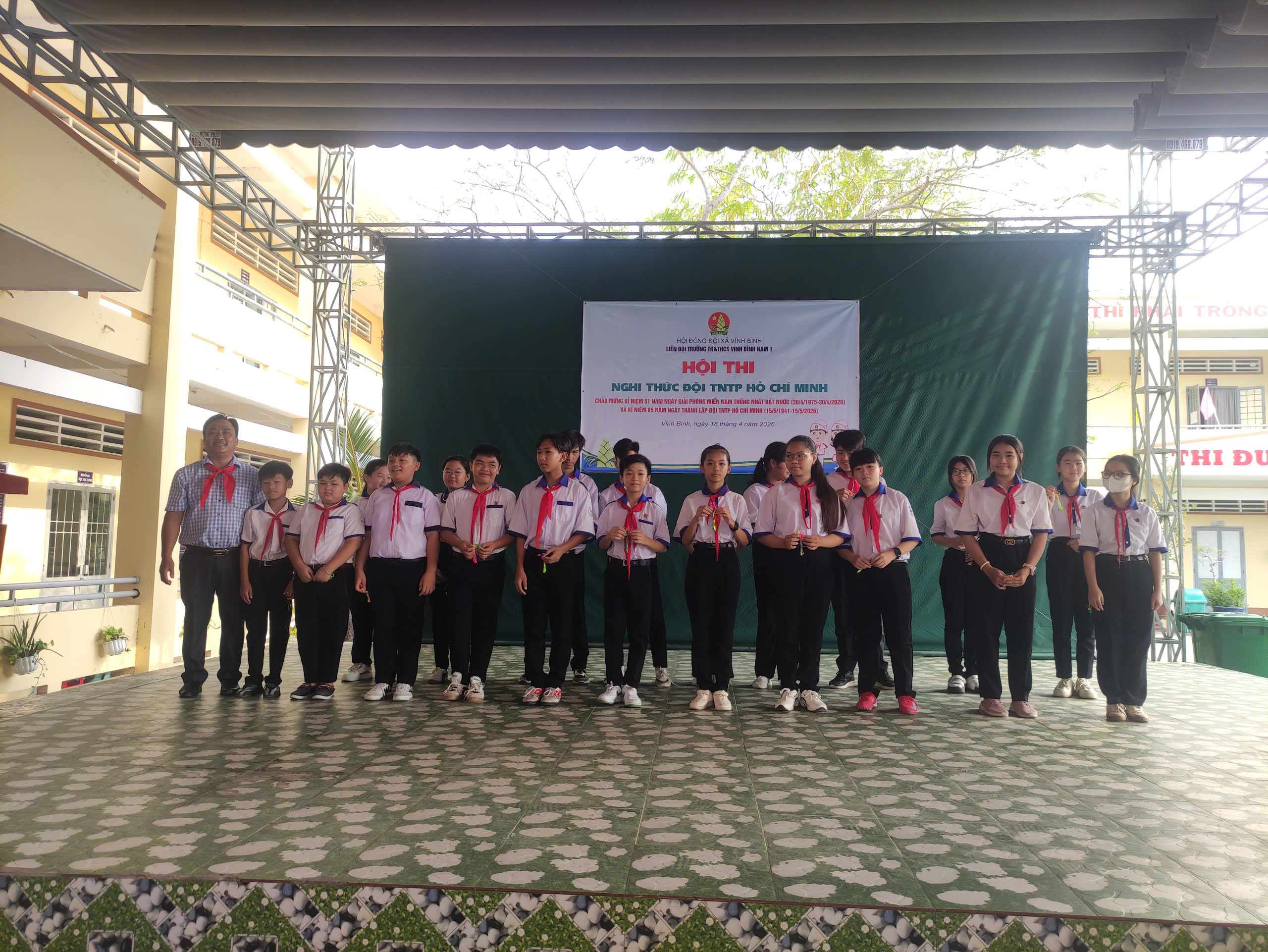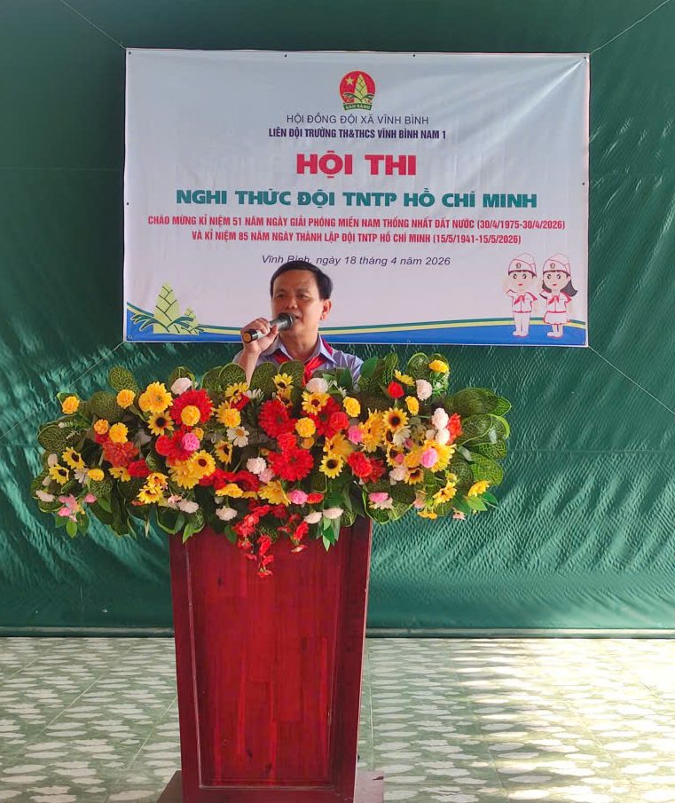 Sáng ngày 18/4/2026, Liên đội trường TH&THCS Vĩnh Bình Nam 1 đã tưng bừng tổ chức Hội thi Nghi thức Đội TNTP Hồ Chí Minh cấp trường năm học 2025-2026. Hội thi không chỉ là đợt sinh hoạt truyền thống ý nghĩa mà còn là dịp để các em đội viên giao lưu, học hỏi, thể hiện tinh thần đoàn kết và kỹ năng công tác Đội xuất sắc.