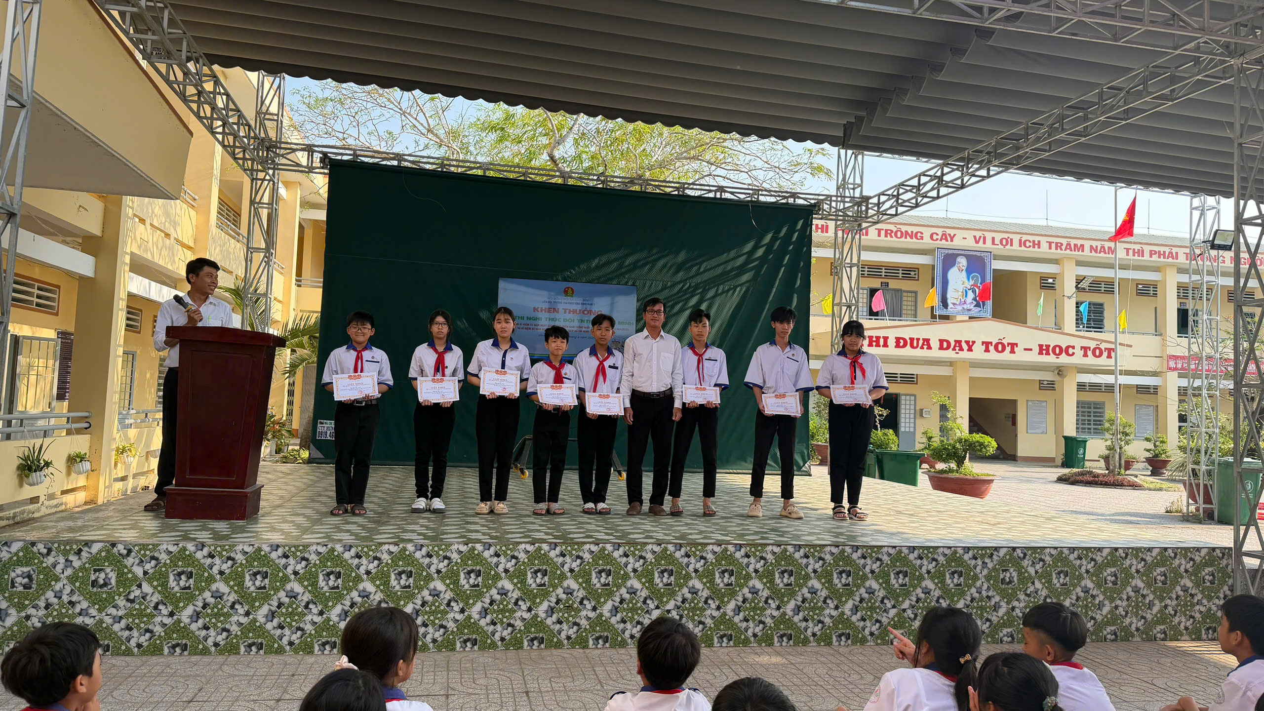 Thầy Nguyễn Văn Bạo – Phó hiệu trưởng trao giấy khen cho các tập thể lớp xuất sắc trong hội thi
