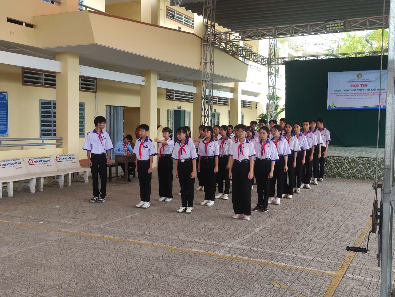 Phát biểu khai mạc Hội thi, thầy Mai Văn Hùng – Bíu thư chi bộ, Hiệu trưởng nhà trường nhấn mạnh: “Hội thi Nghi thức Đội là hoạt động trọng tâm nhằm giáo dục ý thức kỷ luật, tư thế tác phong chuẩn mực cho các em học sinh. Đây cũng là cơ hội để các Chi đội thể hiện sức mạnh tập thể, sự đồng lòng và nét đẹp của người Đội viên Đội TNTP Hồ Chí Minh.”