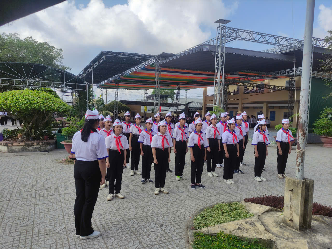 🎖️ Giải Chỉ huy Đội xuất sắc nhất: Đã xướng tên em Nguyễn Bảo Trân, Chi đội 7A1 và em Võ Xuân Mai chi đội 5A với khẩu lệnh to, rõ ràng và khả năng điều hành đội hình linh hoạt.