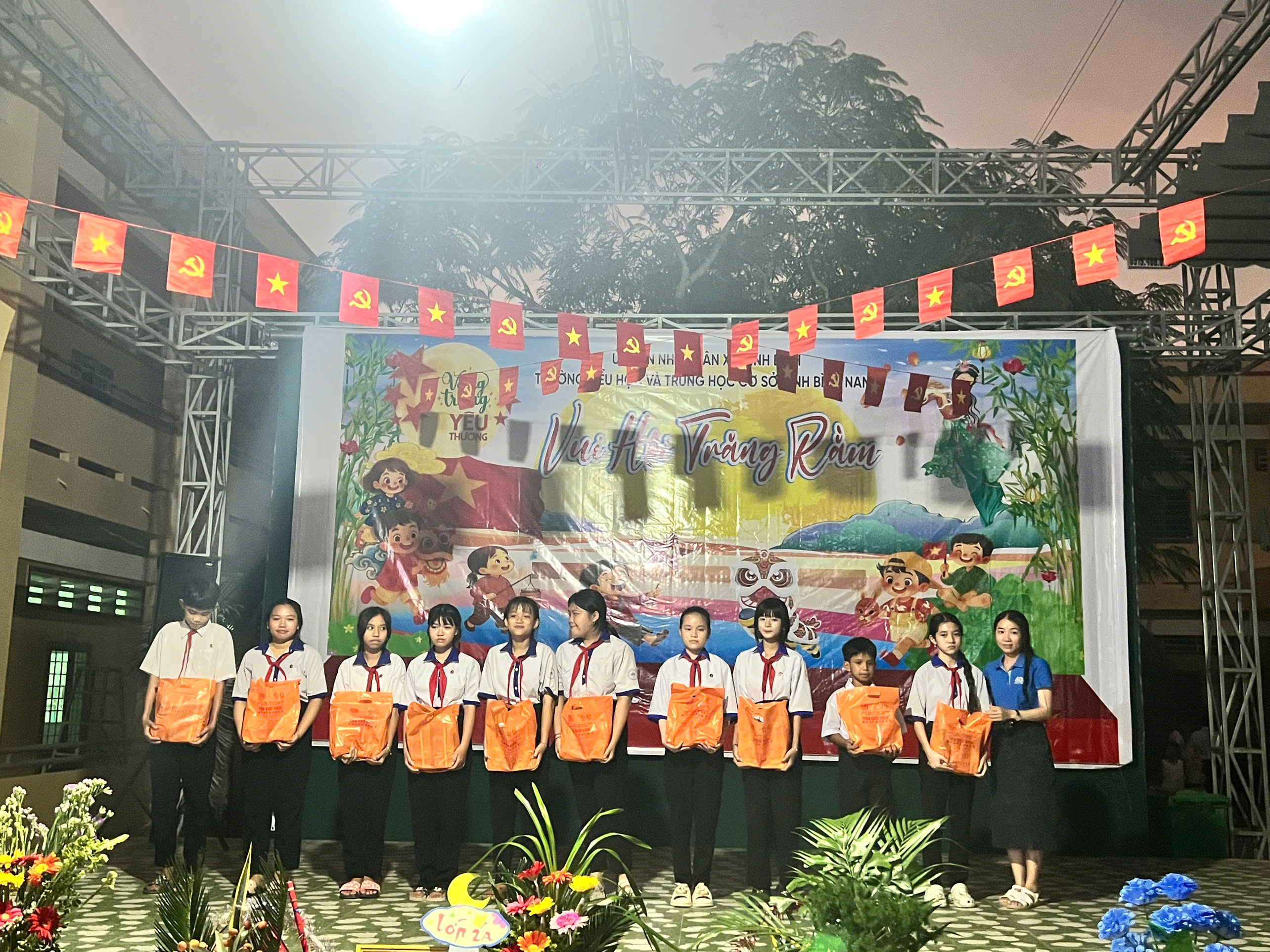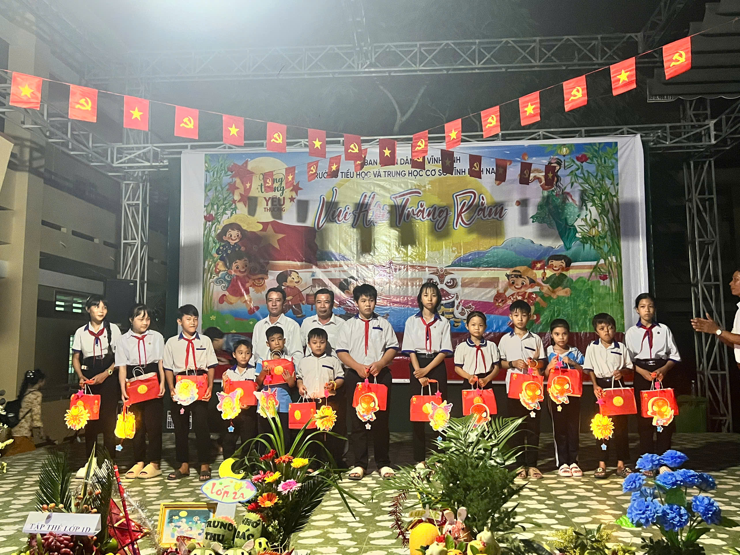 Bên cạnh những hoạt động sôi nổi của nhà trường nhân dịp Tết trung thu, nhà trường đã nhận được các suất quà của các Doanh nghiệp tư nhân, tổ chức đoàn thể trên địa bàn xã Vĩnh Bình hỗ trợ cho các em học sinh nghèo, khó khăn, mồ côi của trường để các em hưởng trọn cái Tết trung thu đầy ấm áp và đầy đủ.